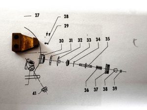 Locking bracket for the relief valve. Part number T36 in the Dreager spare parts list