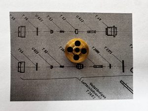 Round nut for attaching the spring to the bail-out non-return valve cone, used until approximately 1960. Part number U623 in the Dreager parts list. Between 1960 and 1963, this same part number was used with a different valve housing.